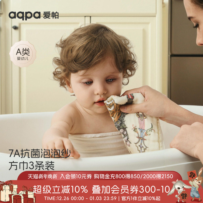 [魔幻剧场]aqpa爱帕婴儿小方巾3条装洗脸巾新生宝宝口水巾围嘴萌