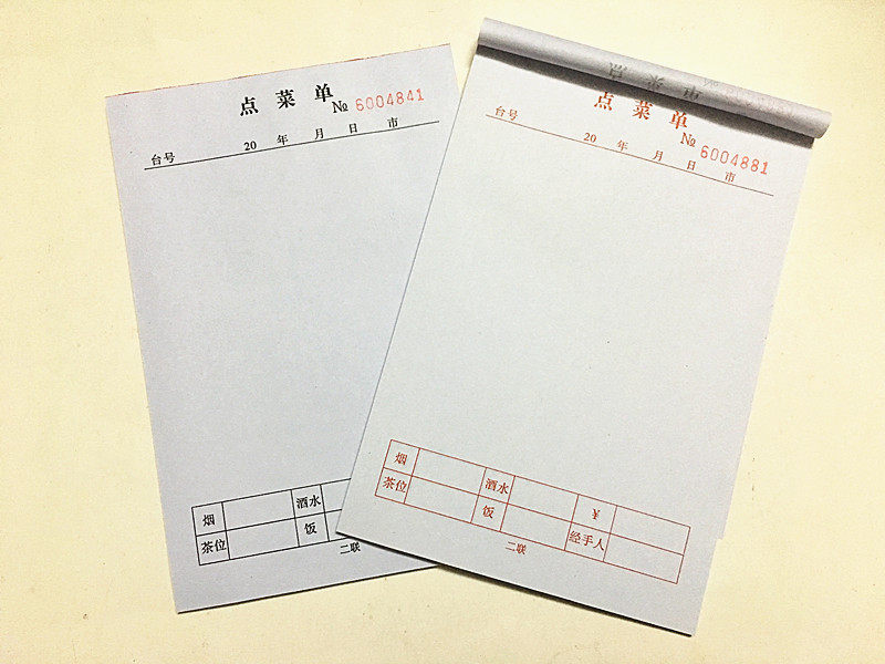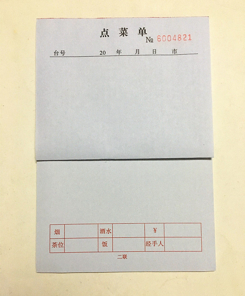 32开一联二联点菜单空白有格32K普通点菜单不带复写餐饮单烧烤单