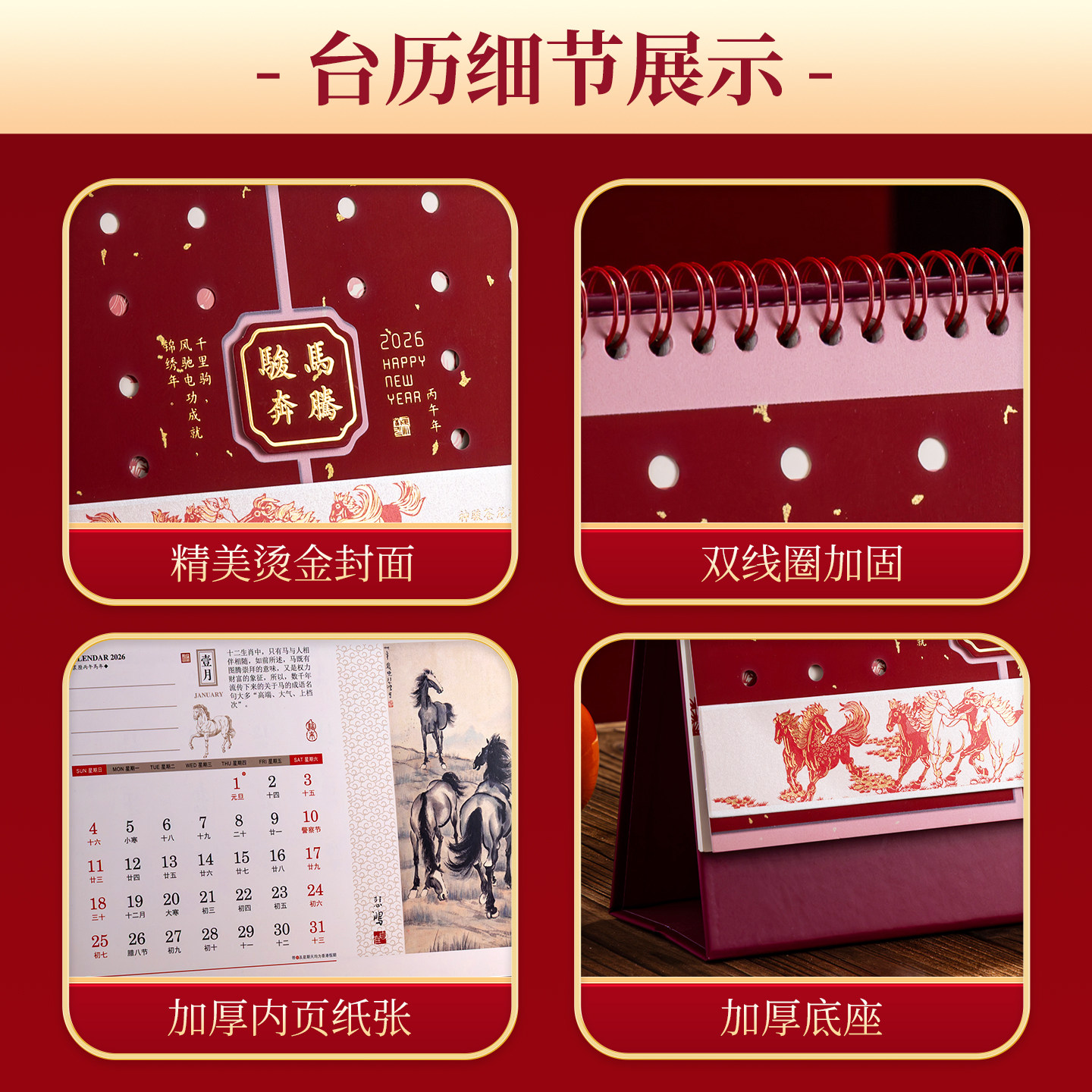 马年台历骏马奔腾2026年新款日历精雕镂空经典中国风办公室桌面装饰摆件新年送礼吉祥寓意企业公司logo定制