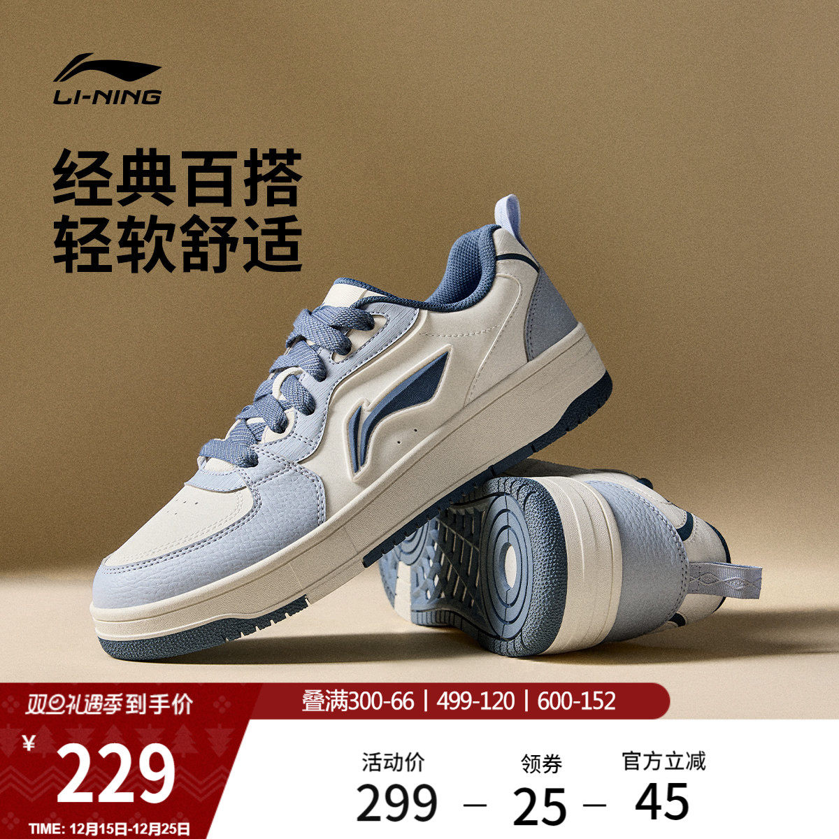 李宁小白鞋 |板鞋女鞋休闲鞋秋季轻便软底舒适百搭鞋子增高运动鞋