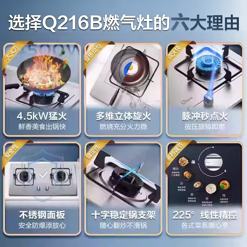 美的燃气灶家用煤气灶双灶天然气液化气不锈钢炉灶嵌入式灶