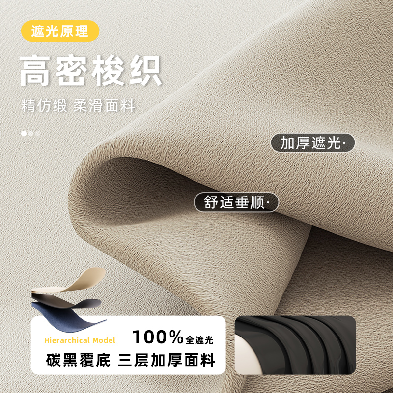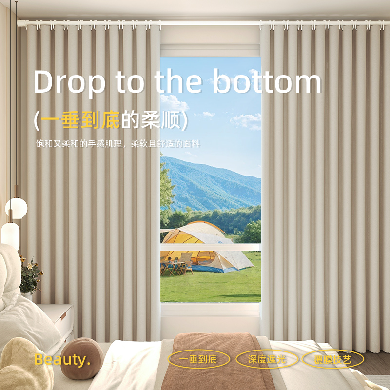 全遮光窗帘免打孔安装轨道挂钩纯色落地办公室阳台隔热防晒飘窗新