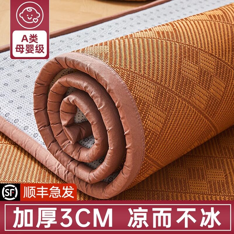 艾草加厚2025新藤席子凉席双人可折叠冰丝席竹席单人学生宿舍夏天