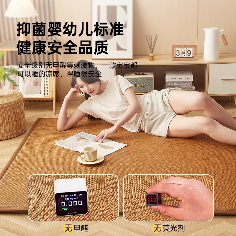 夏季藤席冰丝席床上凉席草席子客厅地垫家用打地铺榻榻米藤编地毯