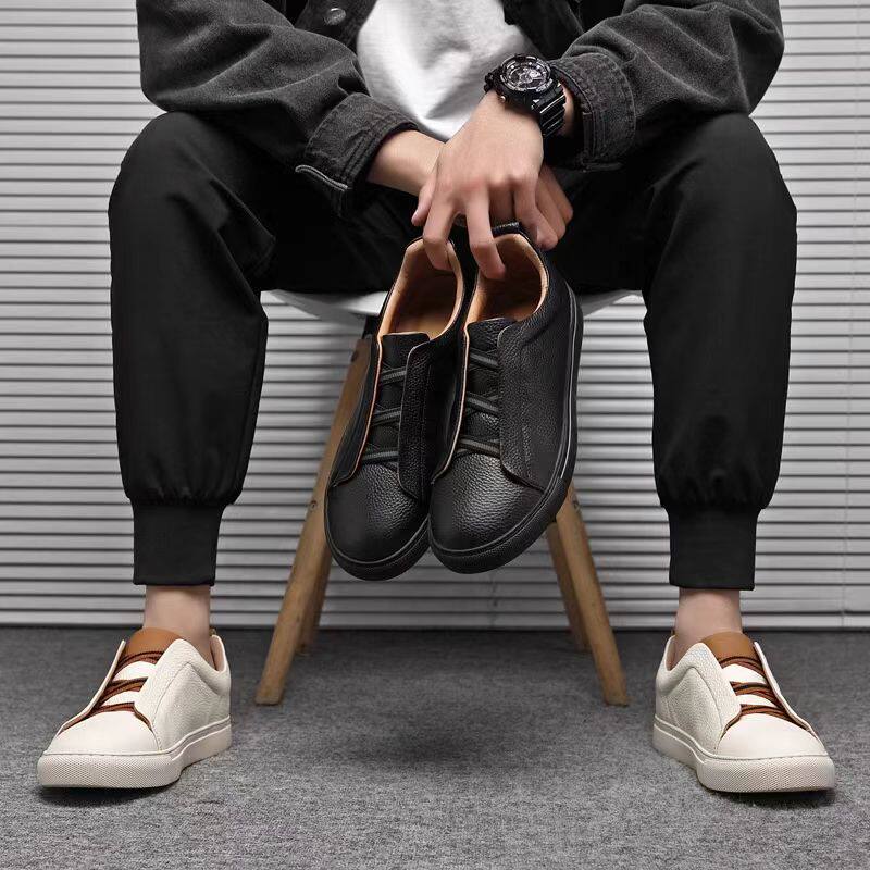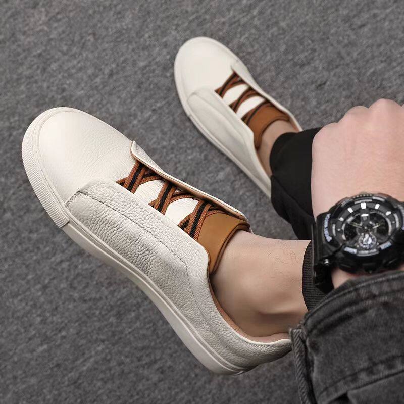 男鞋2026新款头层牛皮小白鞋一脚蹬休闲男士板鞋免系带皮鞋板鞋