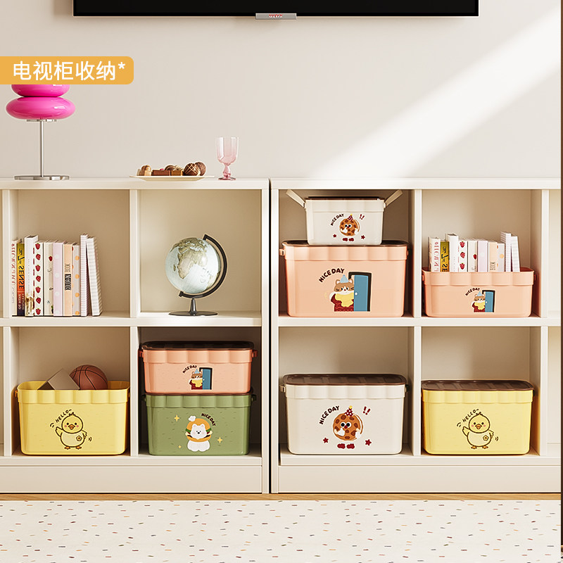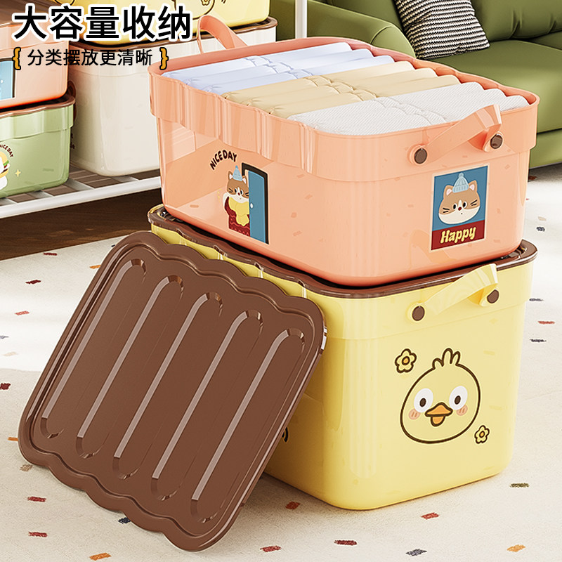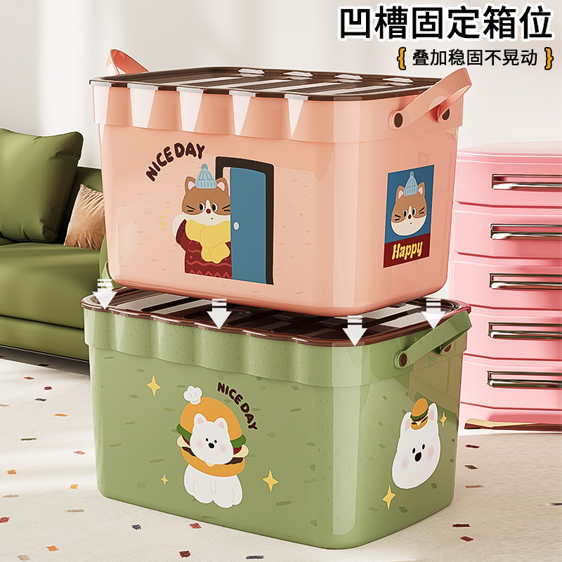 大容量带盖杂物收纳盒多功能桌面整理箱新款家用卡通图案收纳箱子