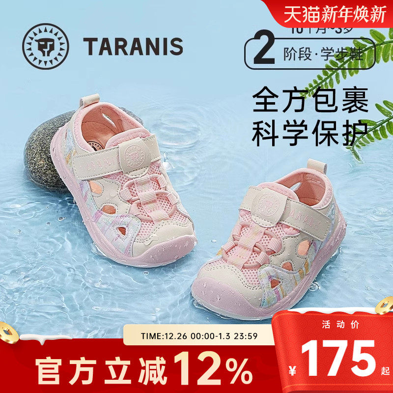 泰兰尼斯夏季新款防滑软底女宝包头软底镂空网面学步鞋女童凉鞋