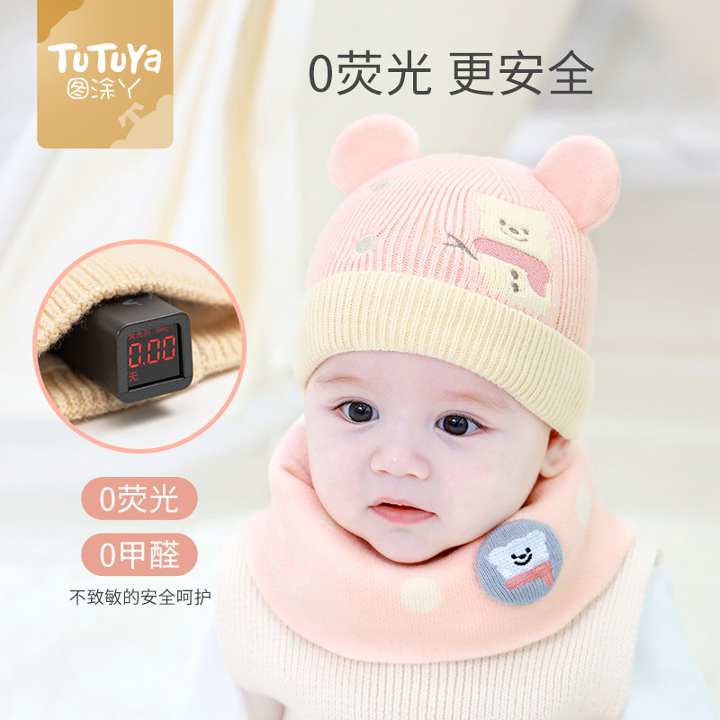 宝宝帽子春秋男孩2025新款女宝纯棉儿童冬季防风堆堆帽围脖两件套
