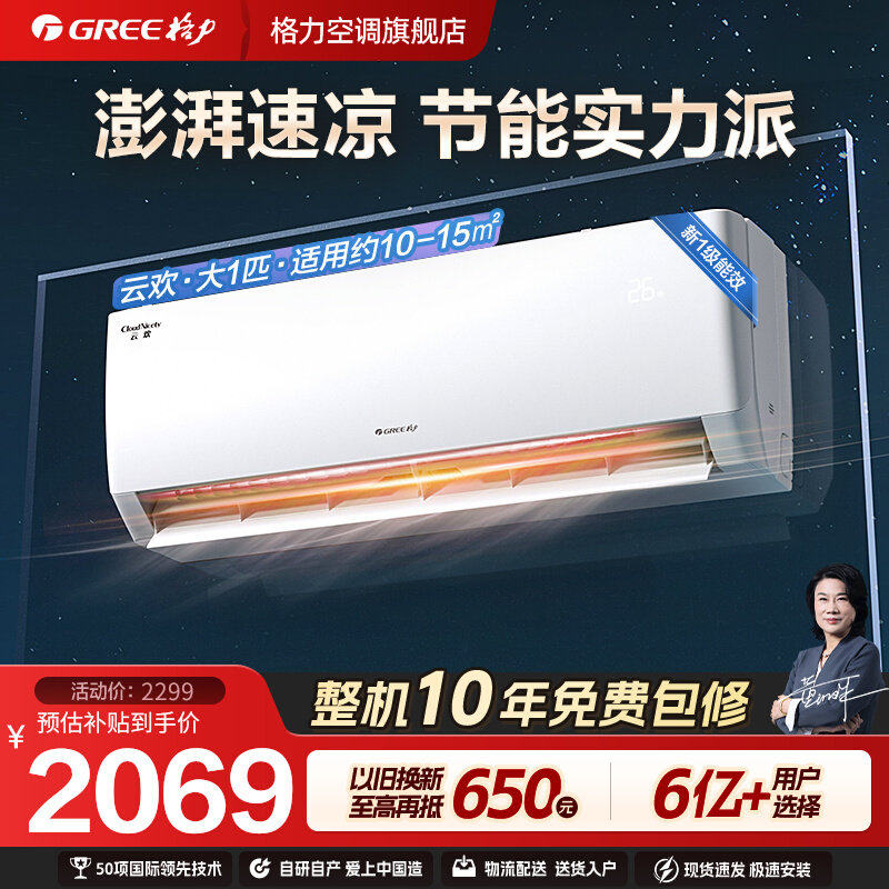 【格力官方正品】冷暖家用小型挂机节能新一级变频空调云欢大1匹