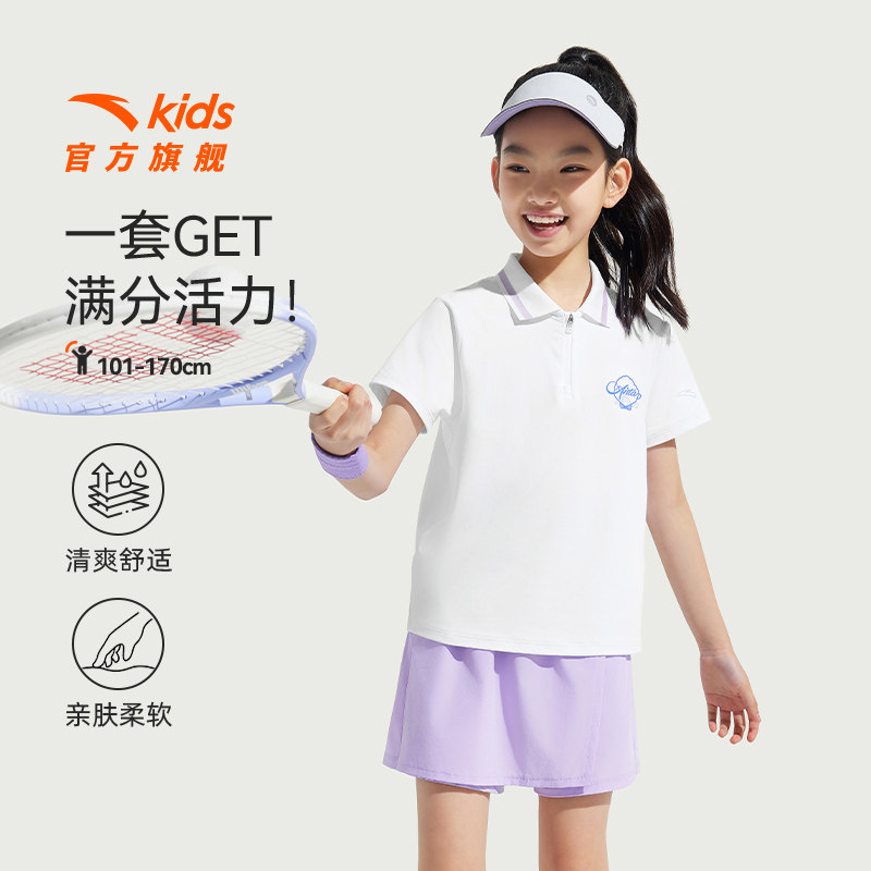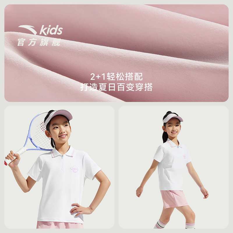 安踏女童套装夏2026速干短袖短裤时尚两件套户外透气跑步运动套装