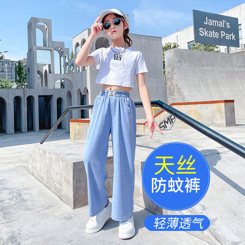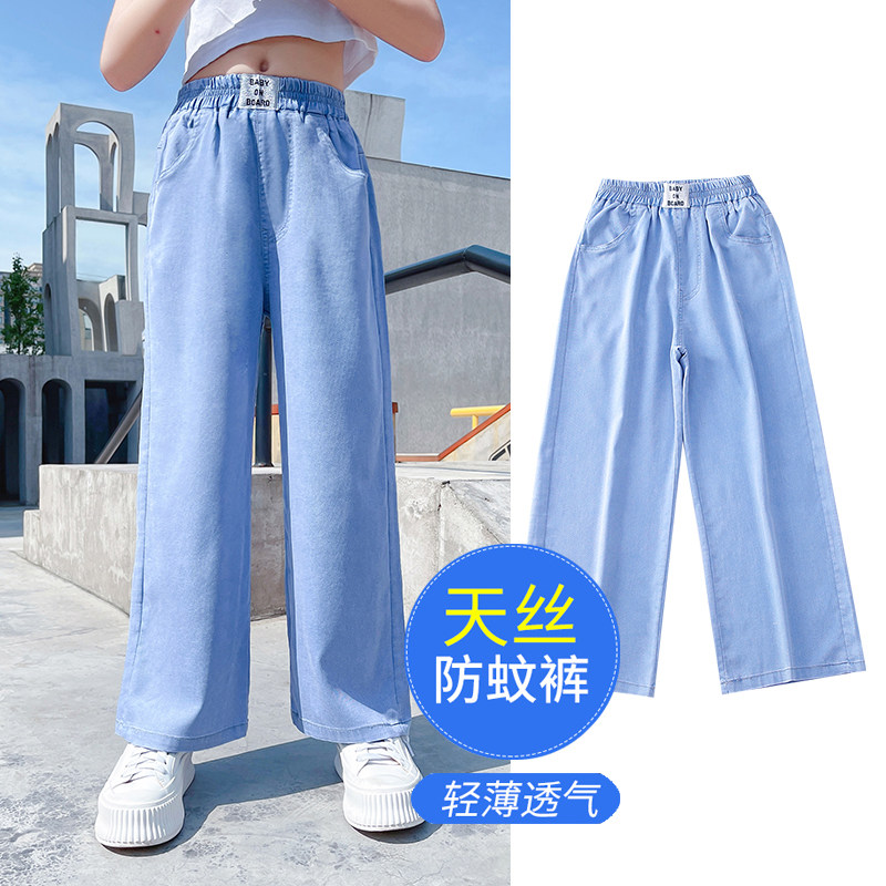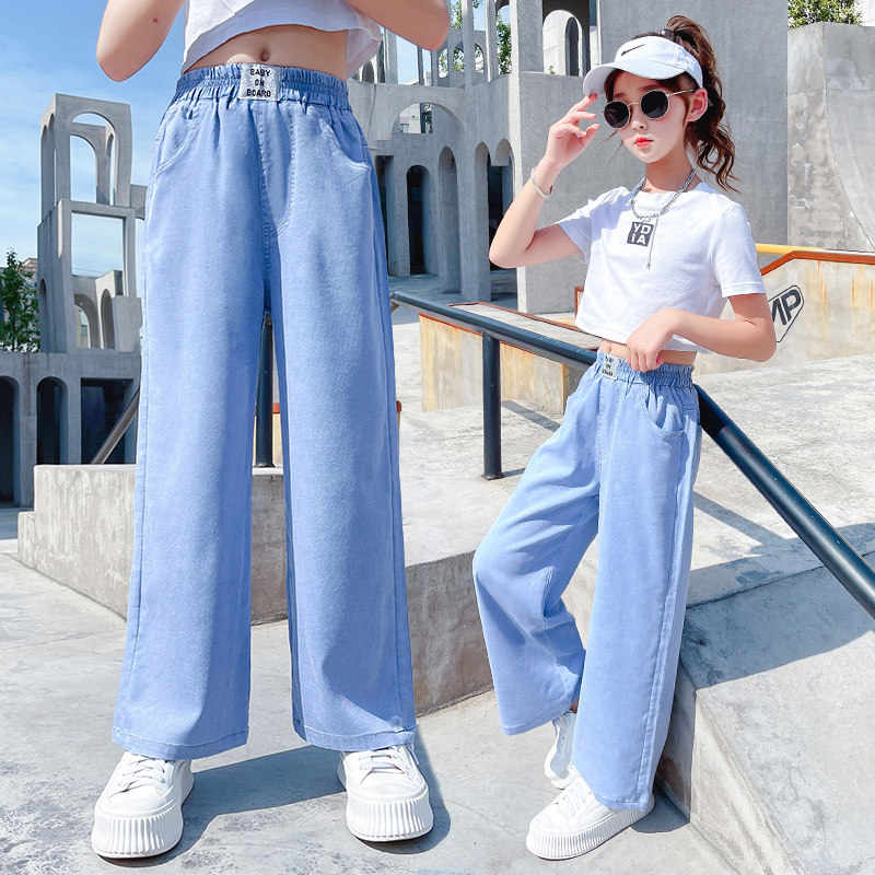 女童阔腿裤夏装洋气宽松儿童中大童直筒天丝牛仔薄款冰丝夏季裤子
