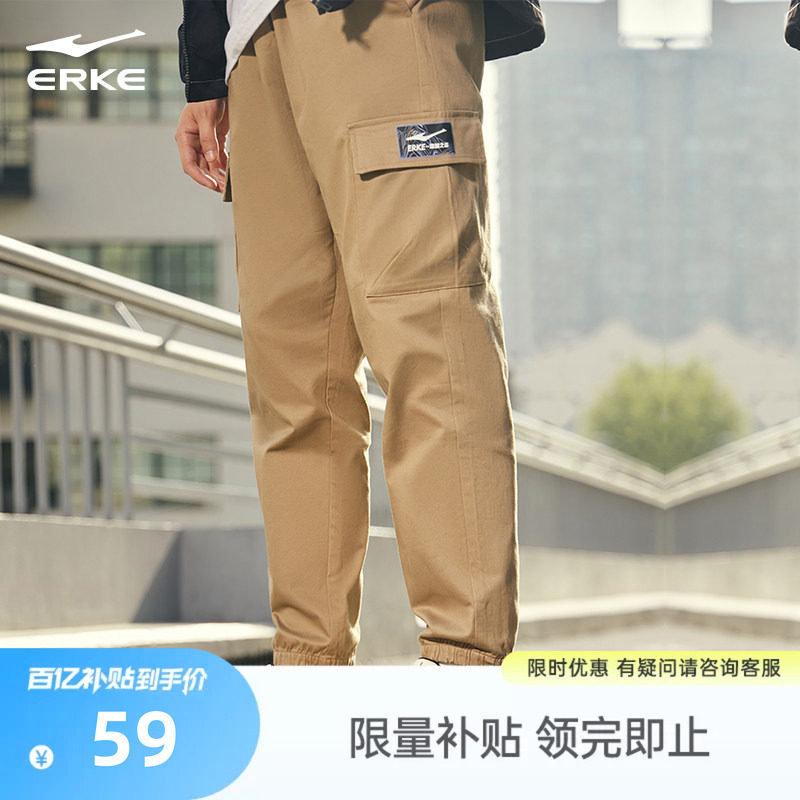 鸿星尔克工装裤男士休闲裤运动裤卡其色男生裤子青少年男裤男装