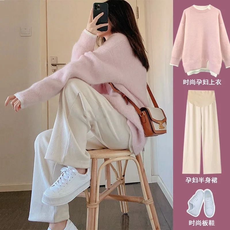 孕妇秋装套装时尚洋气时髦上衣秋冬款2025新款外穿宽松大码两件套
