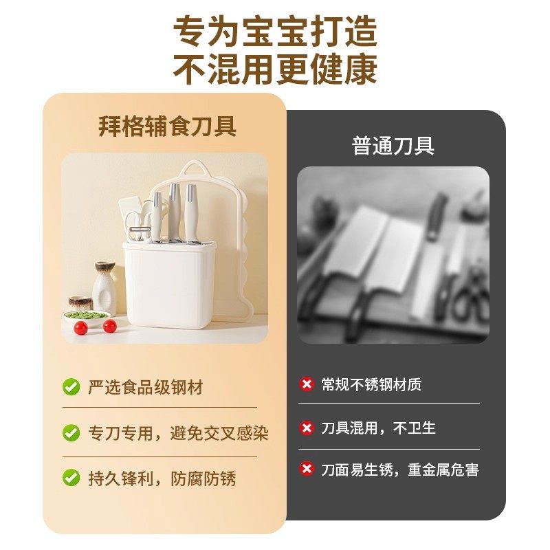 拜格婴儿辅食刀具厨房套装组合宝宝专用刀菜板二合一家用辅食工具