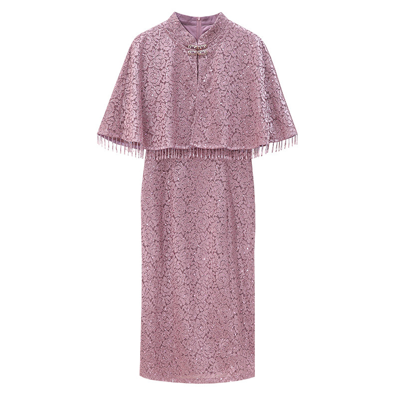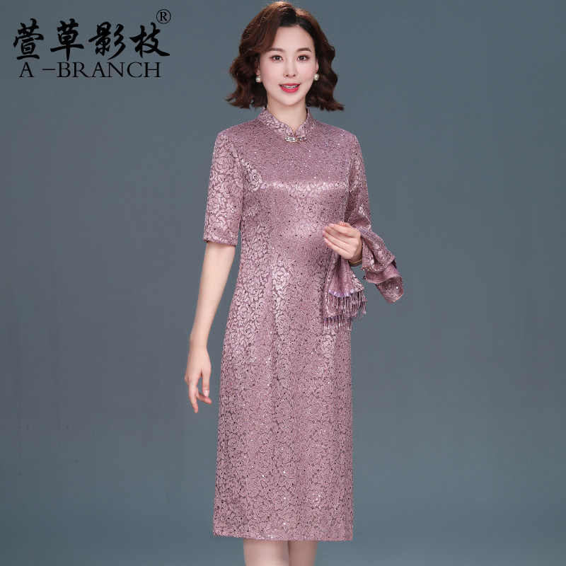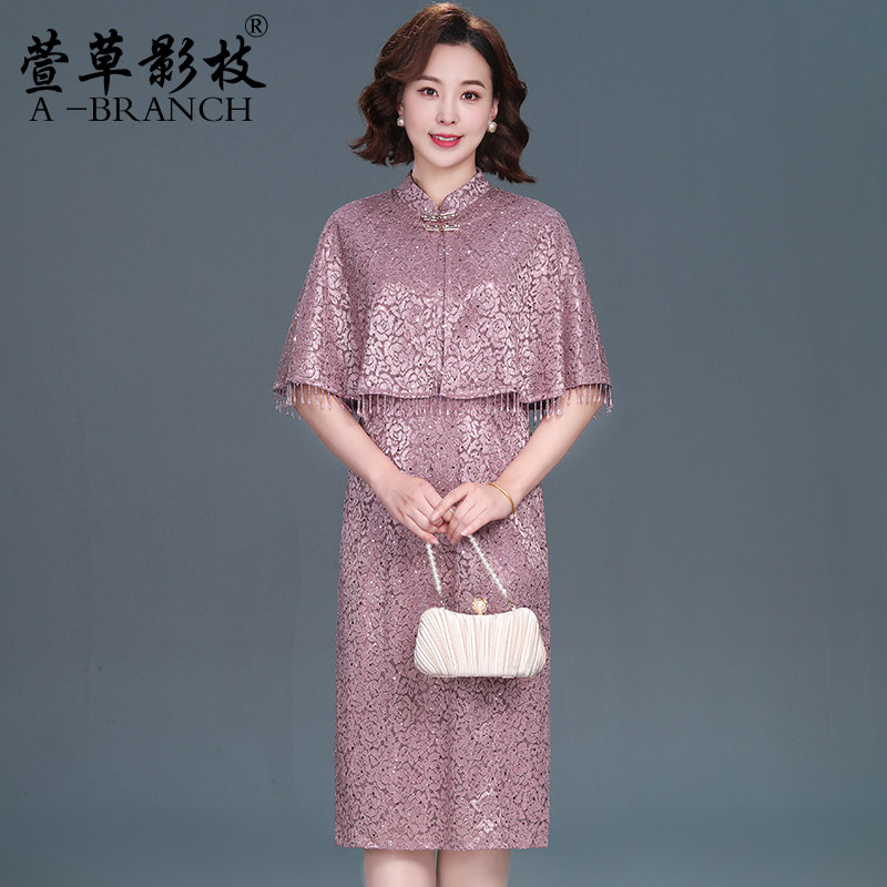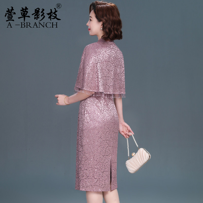中年妈妈旗袍连衣裙春秋季洋气套装喜婆婆结婚宴装高贵新中式礼服