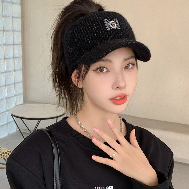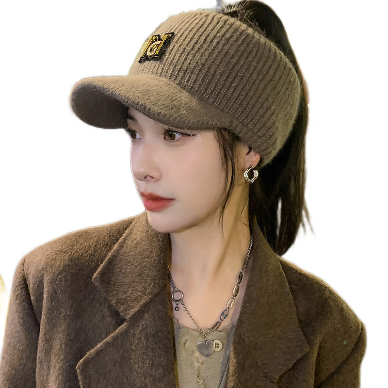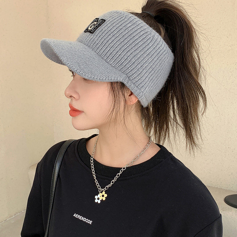 春秋保暖护耳针织鸭舌帽子女士洋气时尚韩版冬季空顶棒球帽潮灰色