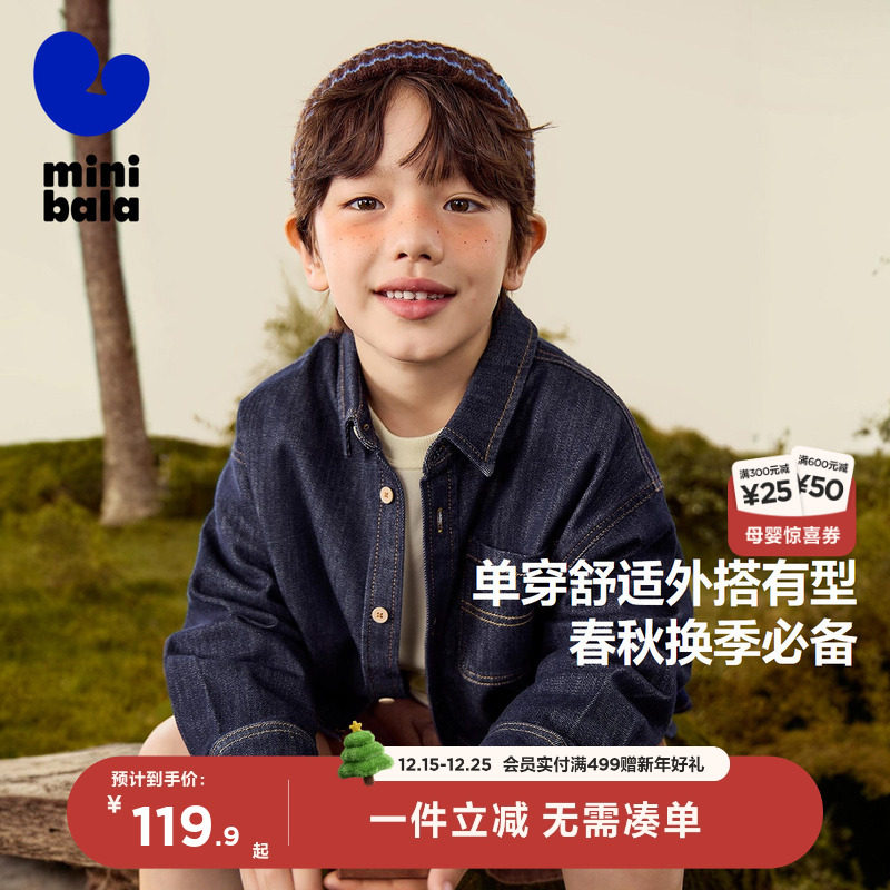 【软牛仔】迷你巴拉巴拉男女童衬衫儿童2025秋新品长袖宝宝上衣