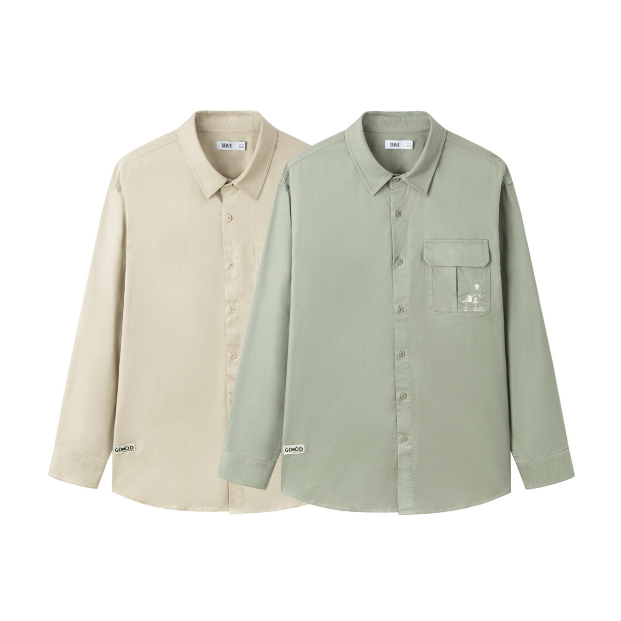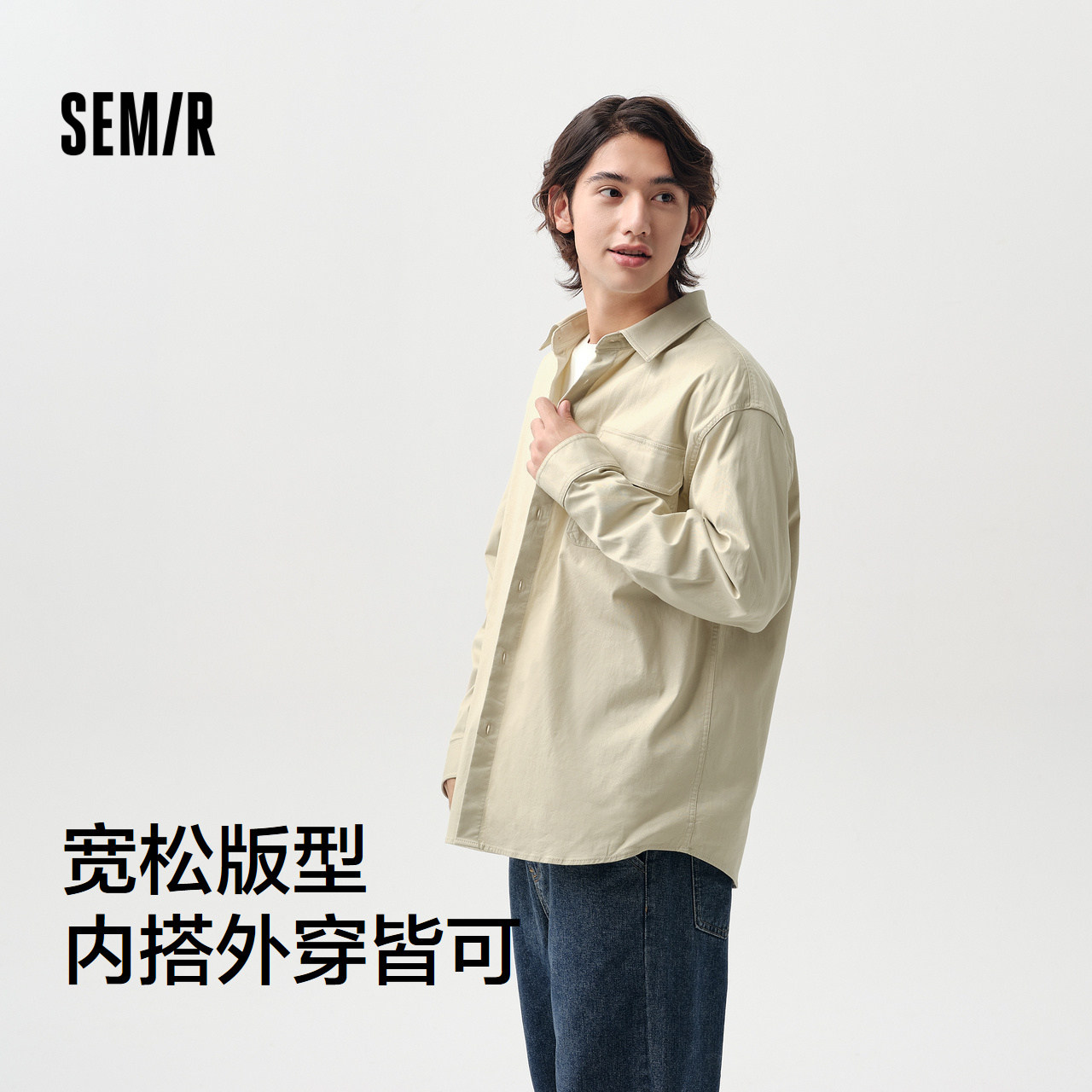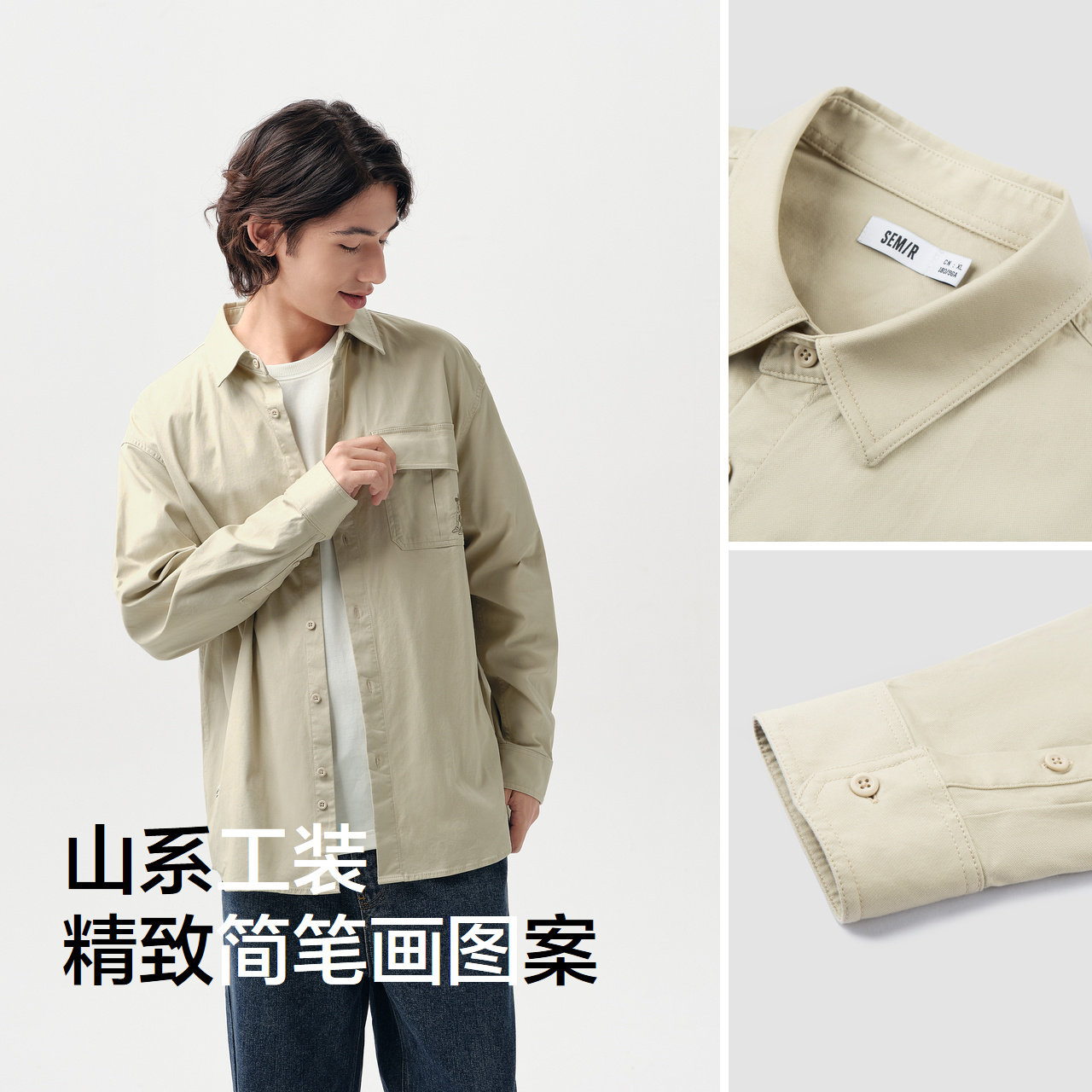 森马长袖衬衫男春季山系户外风工装宽松衬衣外套潮流印花翻领上衣