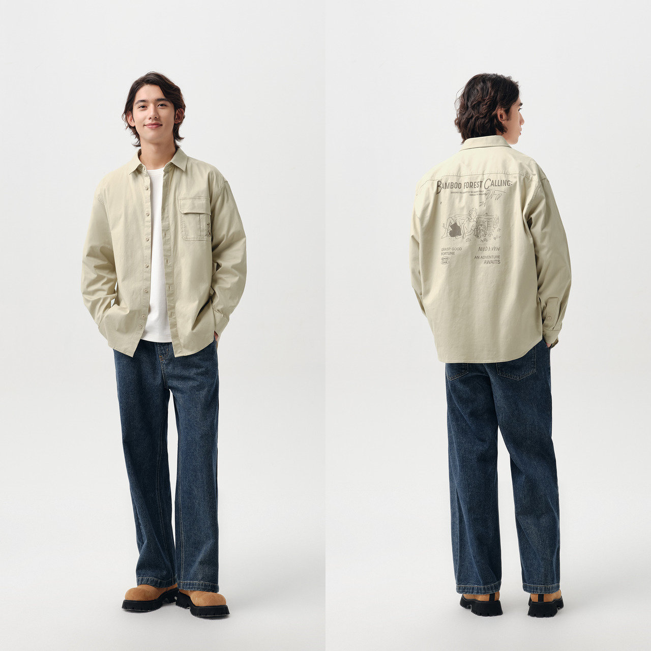 宽松长袖衬衫 山系工装外套 潮流印花