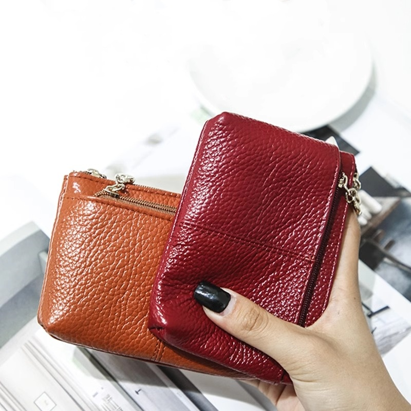 外贸出口尾货女士迷你拉链钱包真皮头层牛皮清仓手拿手抓女包卡包