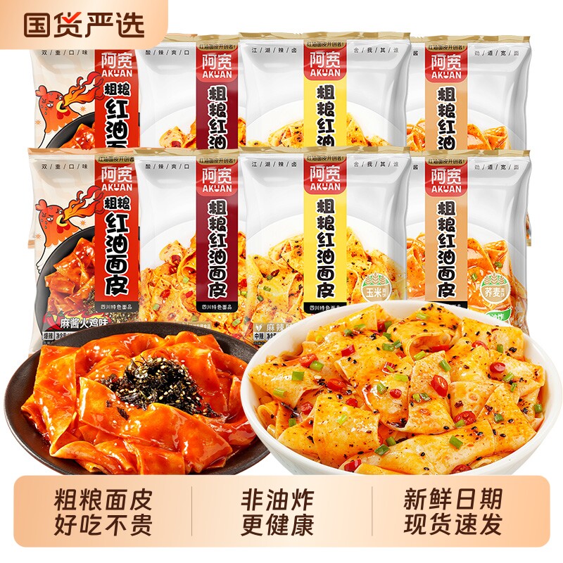 阿宽红油面皮粗粮荞麦方便面袋装整箱干拌火鸡面夜宵速食免煮泡面