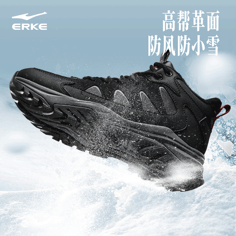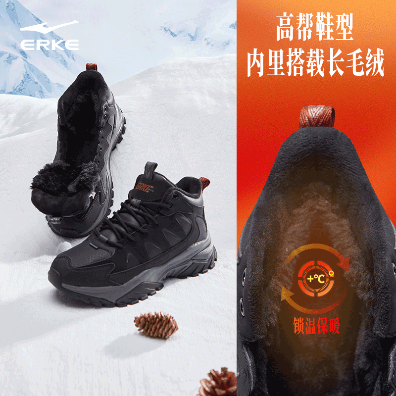 鸿星尔克炽野女雪地靴高帮休闲鞋冬季新款棉鞋防滑保暖加绒运动鞋
