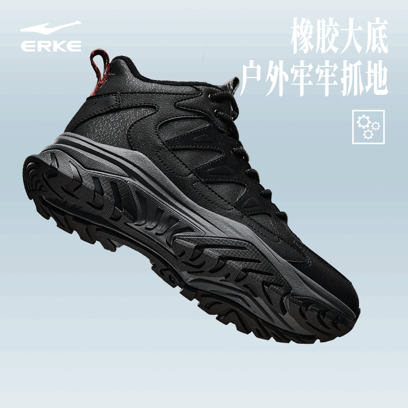 鸿星尔克川行男鞋秋冬新款运动鞋革面休闲鞋厚底鞋轻便网面跑步鞋