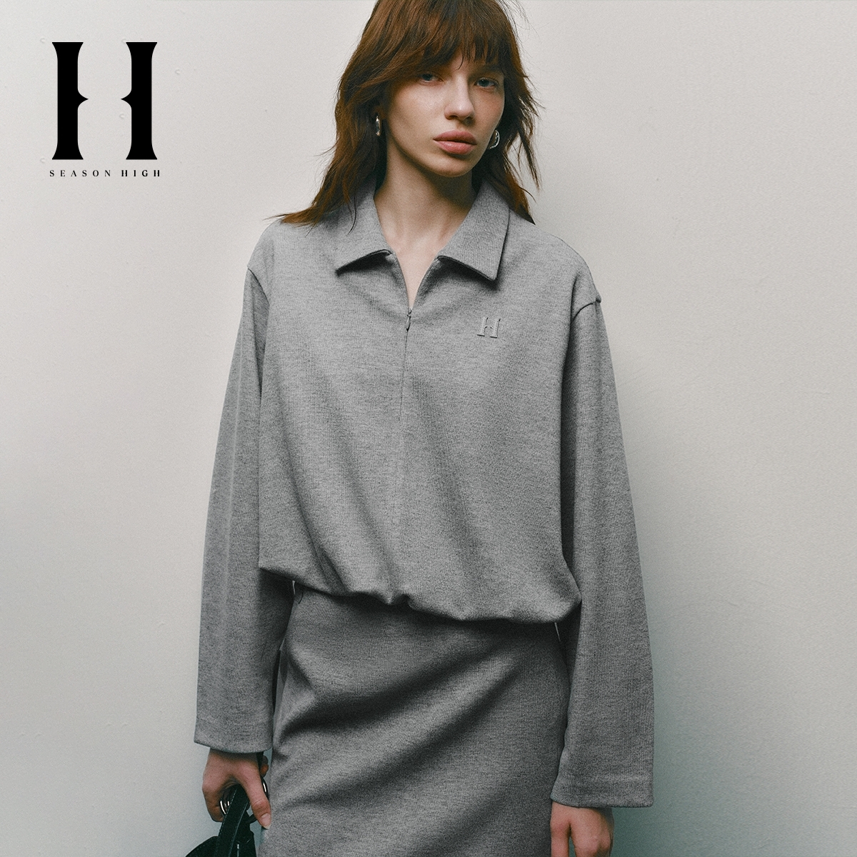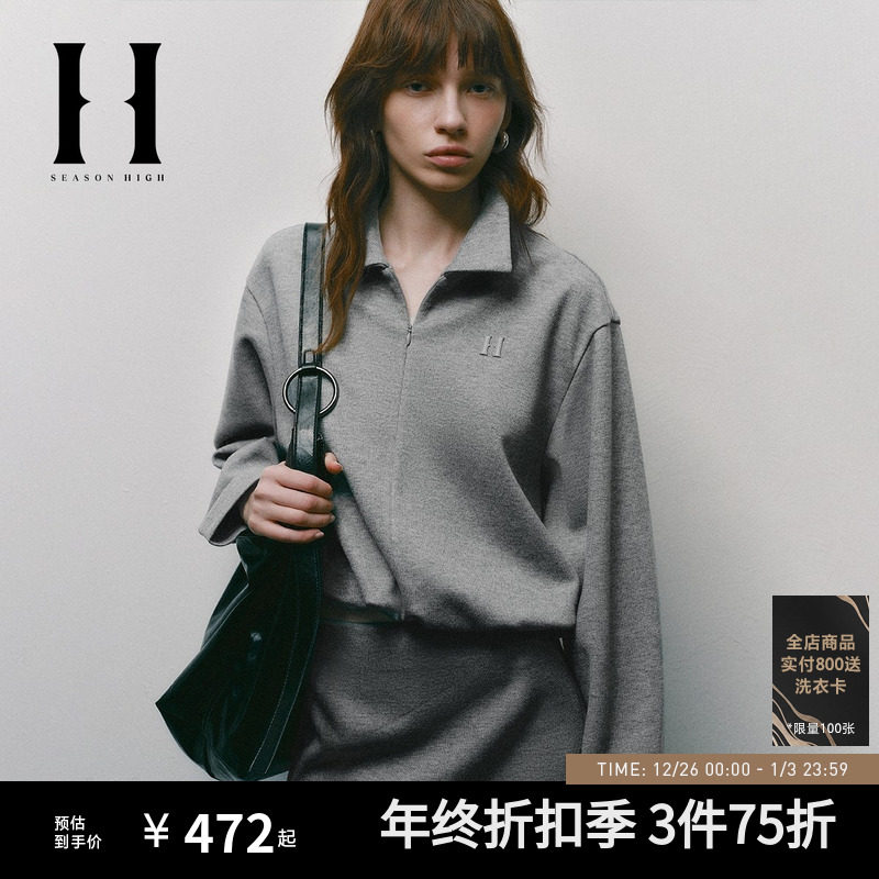 SEASON HIGH女装卫衣上衣内搭时尚百搭潮流翻领拉链款