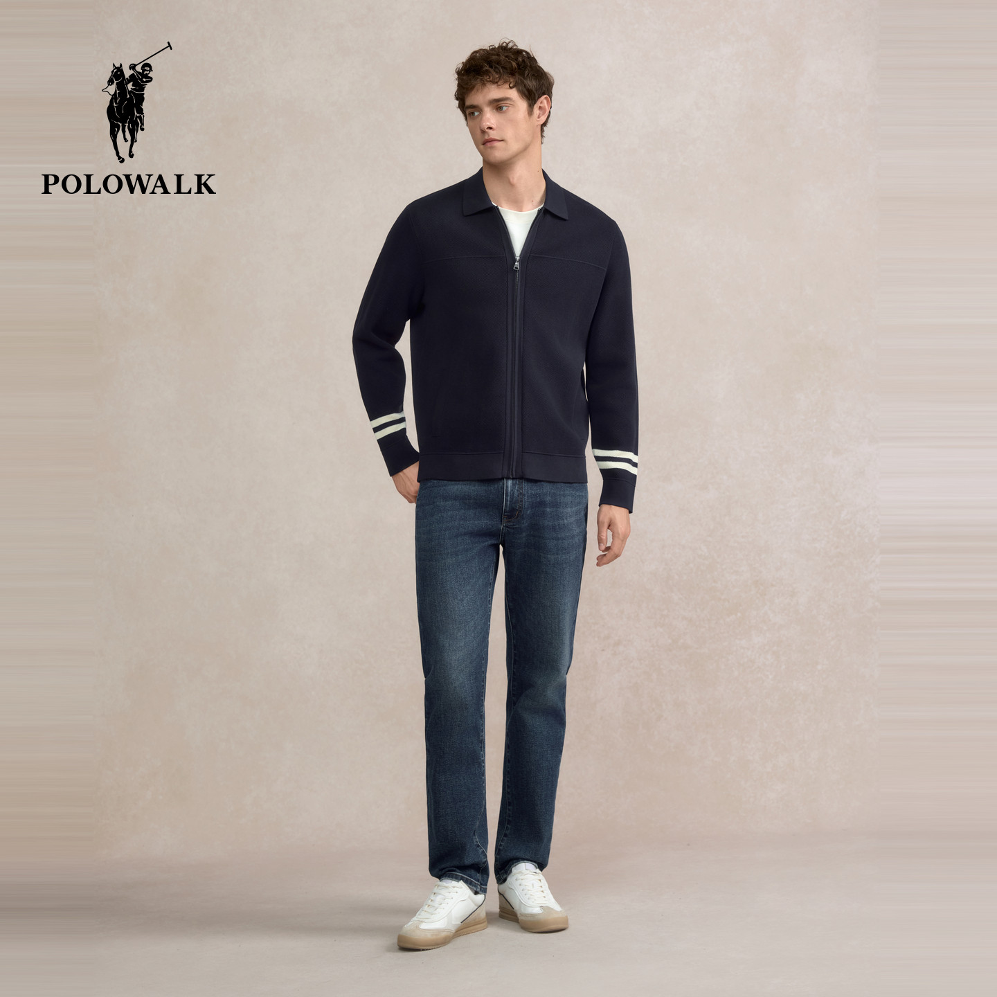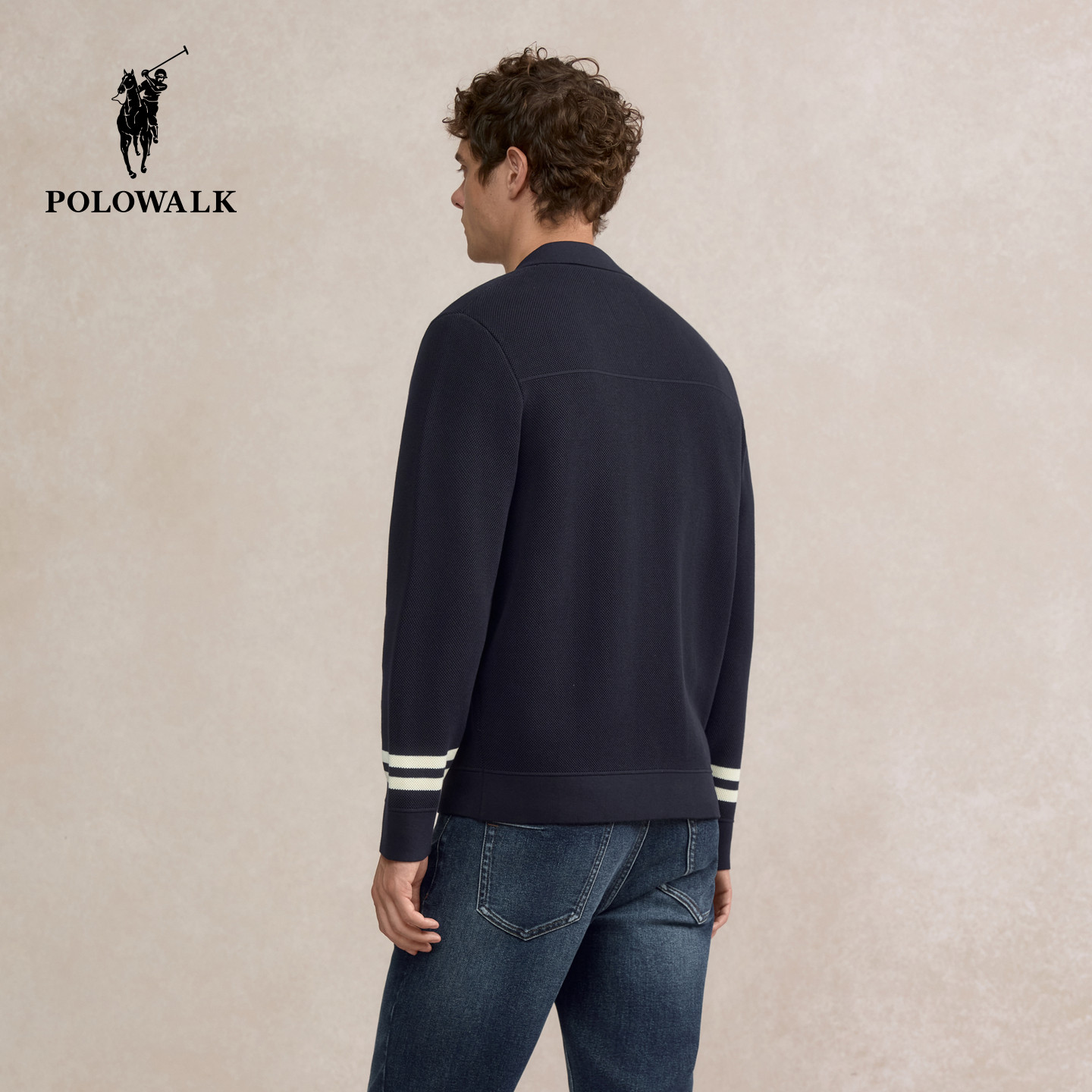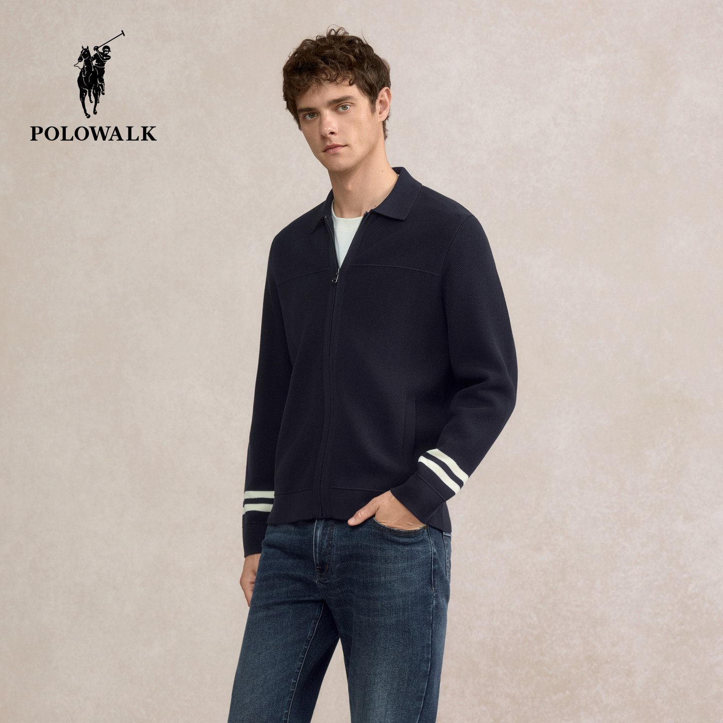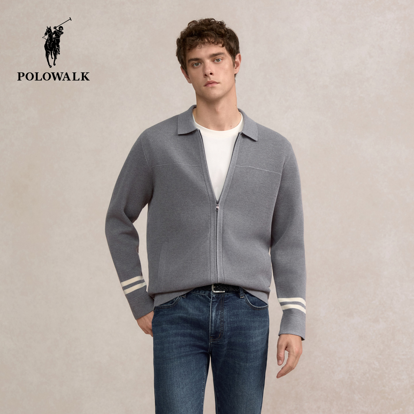 POLOWALK男装针织衫2025秋季新品条纹商务休闲翻领开衫男式外套
