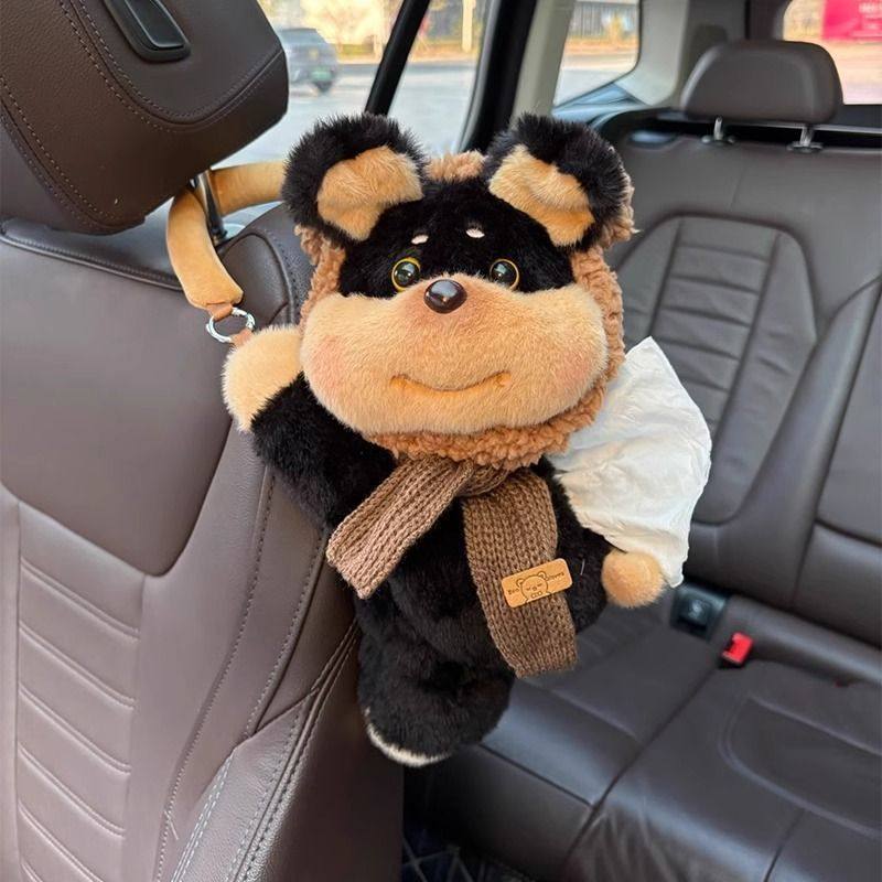 车载纸巾盒创意可爱小狗装饰抽纸盒车内挂式汽车纸巾袋车用纸抽盒