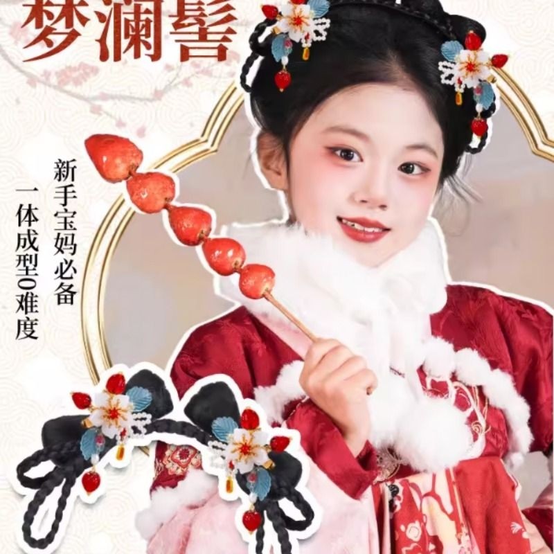 儿童汉服假发蝴蝶结发髻造型古装假发包女童汉服假发头饰假发古风