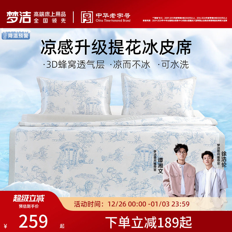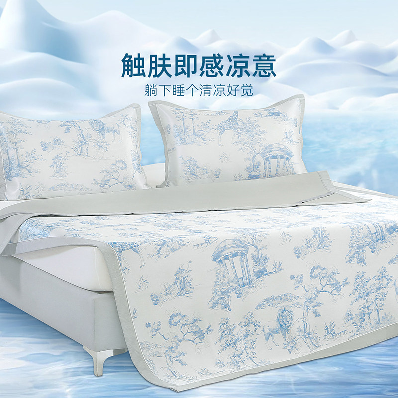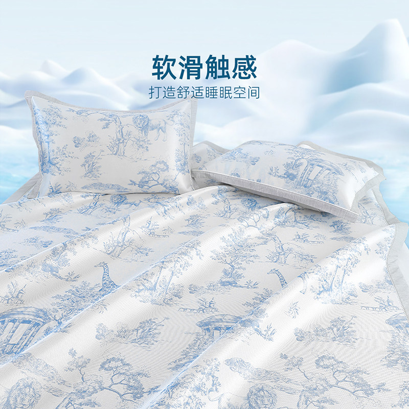 【佳琦推荐】梦洁凉席夏天冰丝席可水洗三件套可折叠