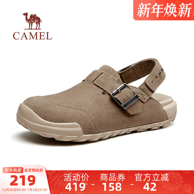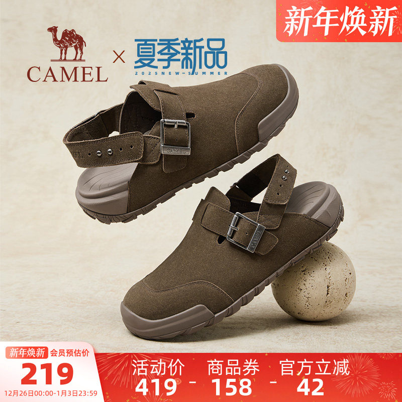 骆驼男鞋勃肯鞋2025夏季新款舒适透气复古增高男外穿半拖休闲凉鞋