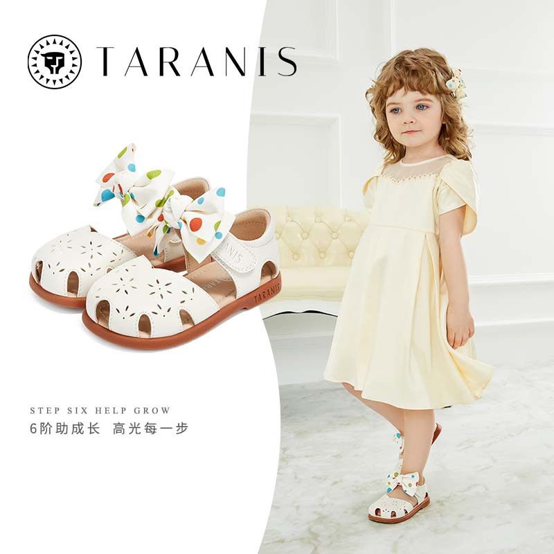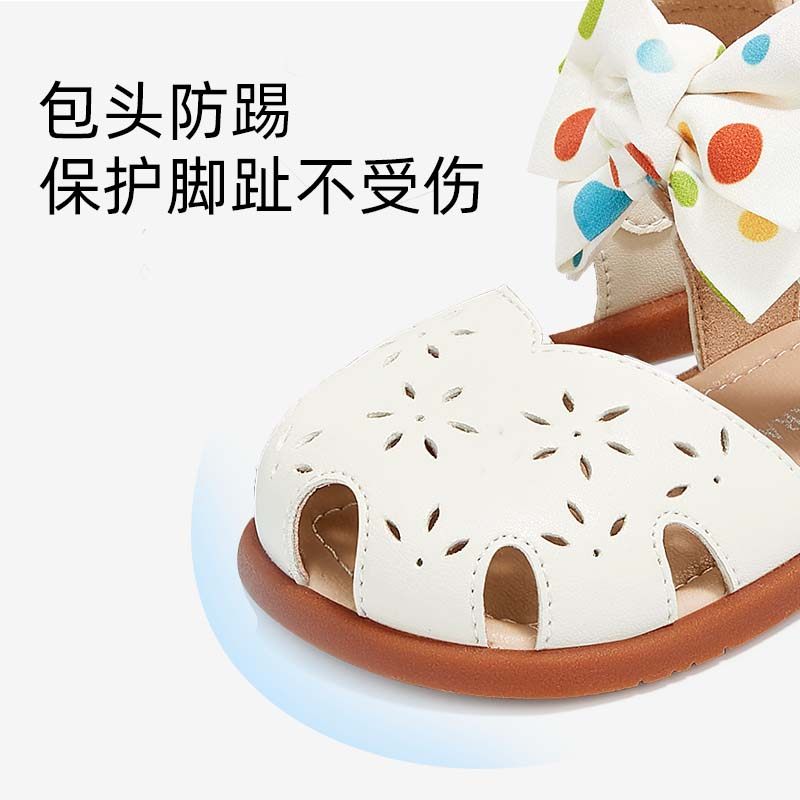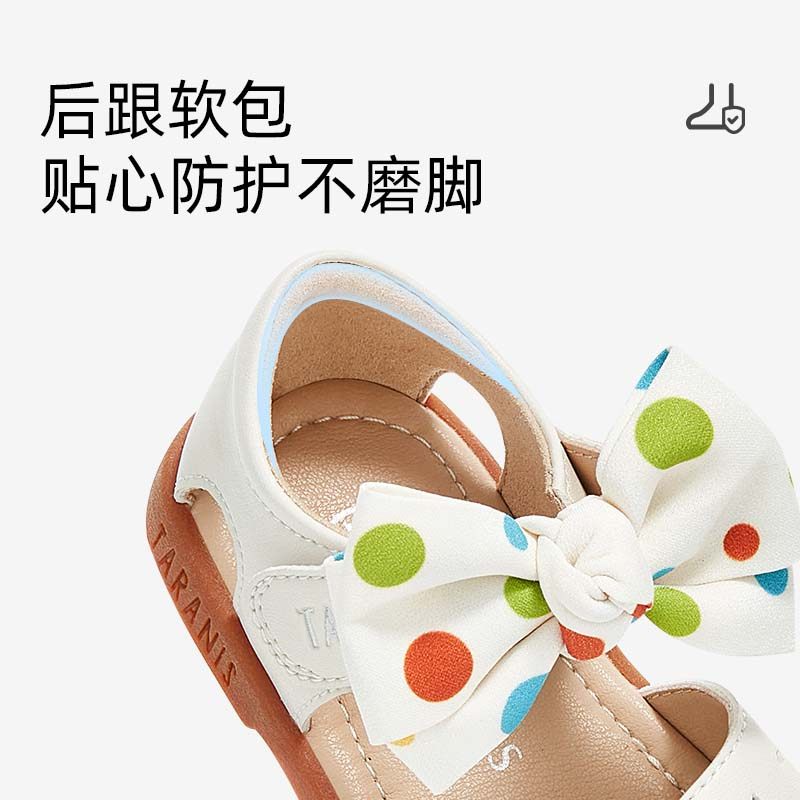 泰兰尼斯夏季新款儿童凉鞋波点蝴蝶结包头凉鞋防滑软底女宝宝鞋子
