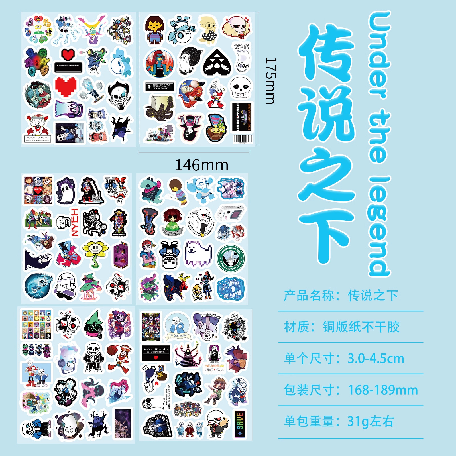 206张传说之下贴纸FriskSans热门游戏周边行李箱手机防水装饰贴画