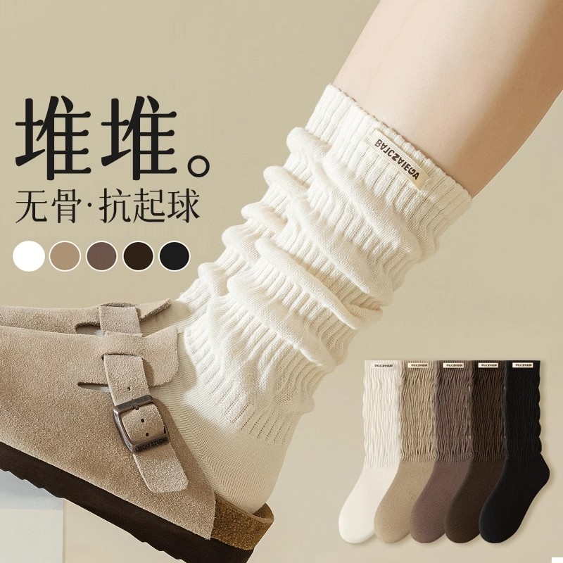 秋冬款袜子女秋冬季中筒堆堆搭配勃肯鞋长筒袜套灰色时尚百搭棕色