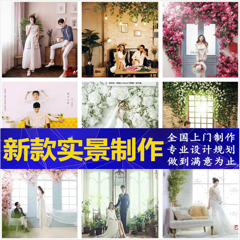 新款儿童实景摄影棚婚纱实景影楼装修简易韩式无闪棚店面设计制作