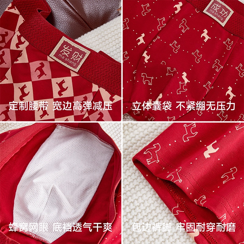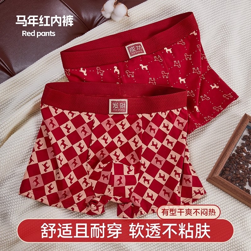 本命年红色男士内裤男款纯棉2026马年红裤衩平角结婚青少年四角裤