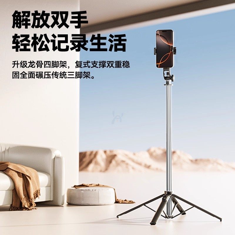 叠品A21P2025新款金属多功能补光自拍杆三脚架遥控拍照神器手机直播支架360°旋转拍照抖音蓝牙便携式防抖