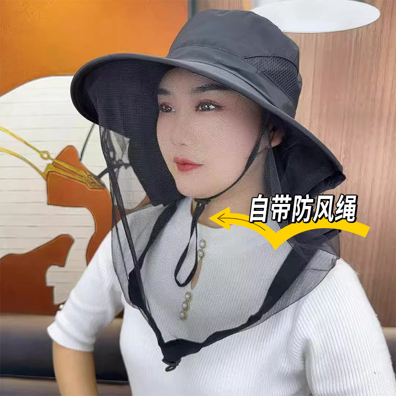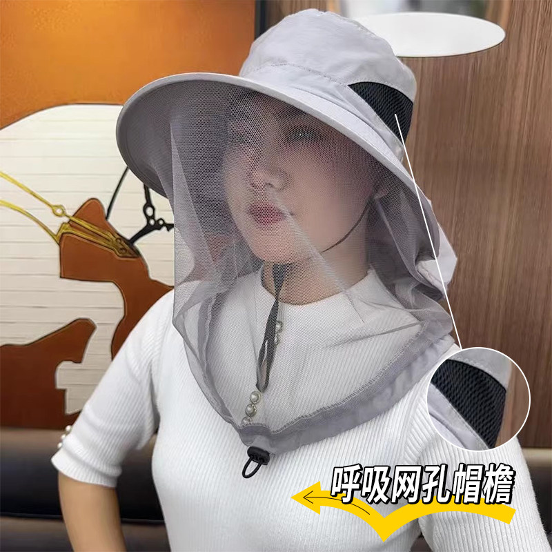 防晒帽防蚊虫网纱面罩男女夏季户外钓鱼登山遮阳帽防紫外线渔夫帽