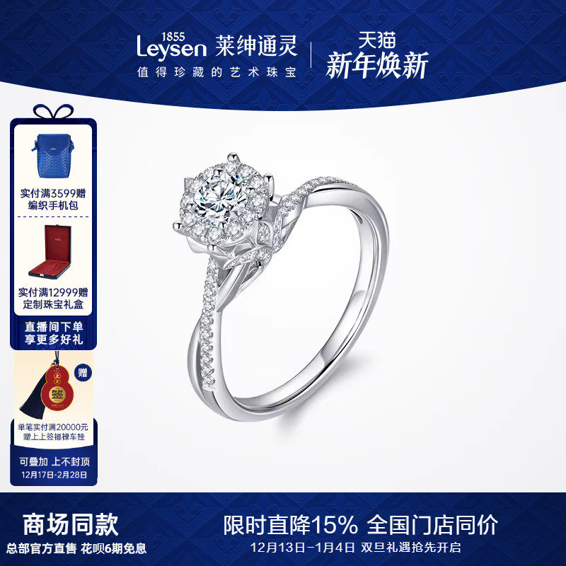 【商场同款】莱绅通灵 王室庄园系列奢华款 18K金钻石戒指钻戒女