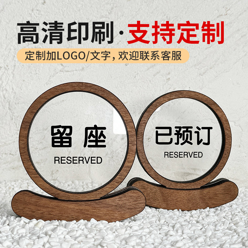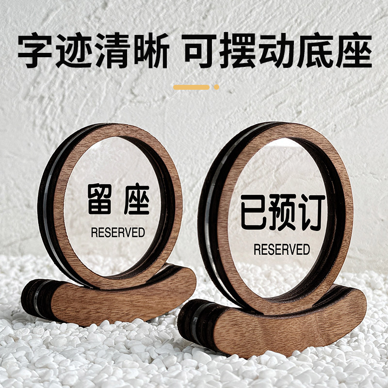 已预订桌牌留座牌饭店留位牌餐厅已预留预约预定提示牌木质餐饮台卡高档餐桌订位留坐桌号牌立式桌面立牌定制