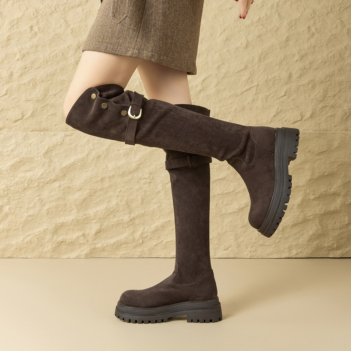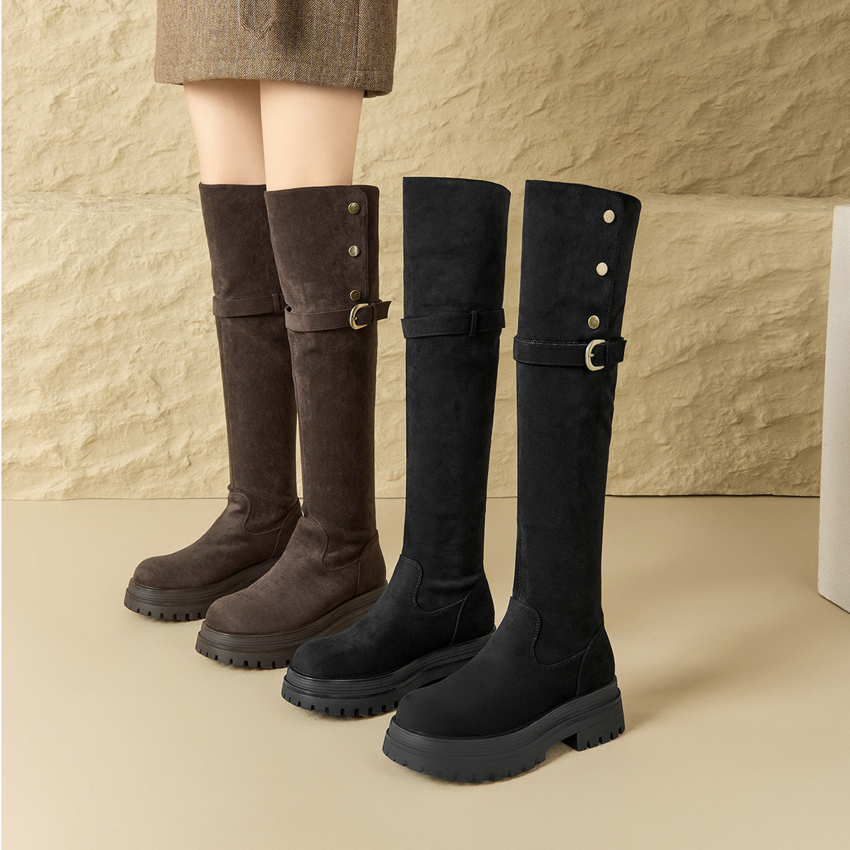 戈美其过膝靴子女长筒靴2025冬季新款厚底小个子长靴女显瘦骑士靴