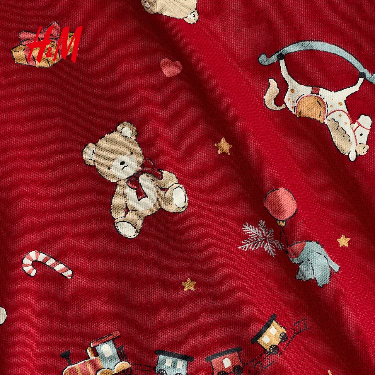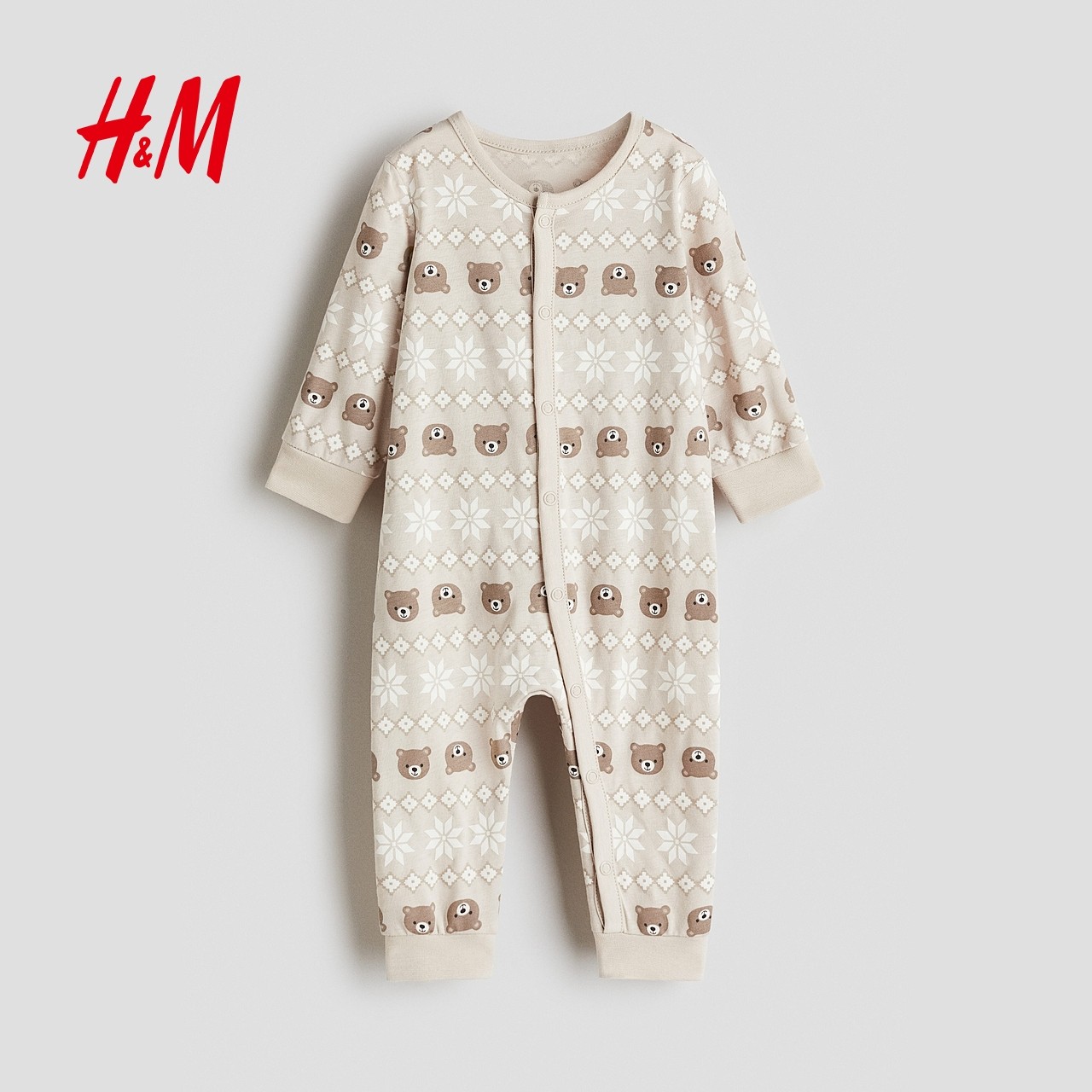 HM童装男婴女婴连身衣2025冬季新款红色圣诞印花连体睡衣1200792