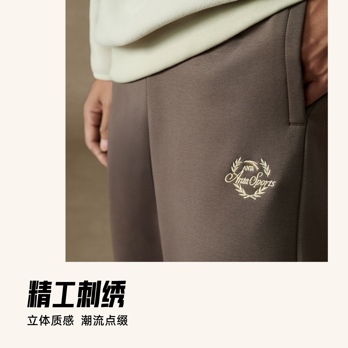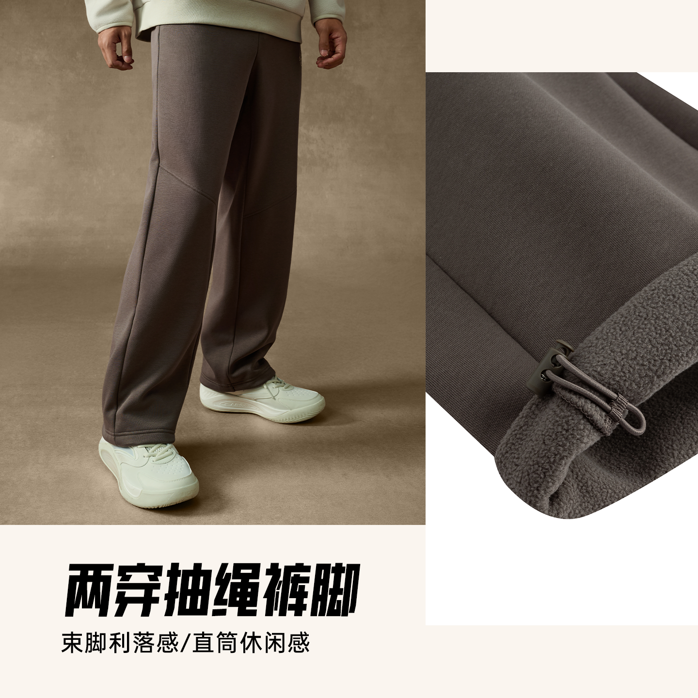 安踏美式复古运动卫裤男士冬季新款宽松刺绣加绒针织长裤直筒裤子