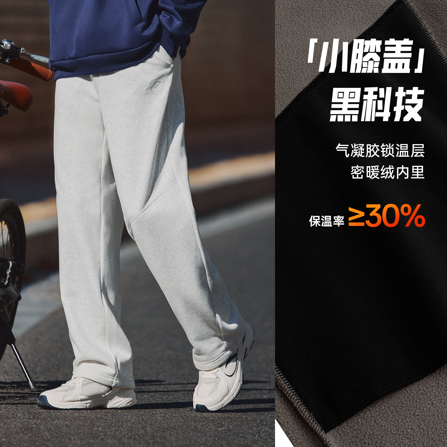 特步加绒卫裤男士加厚秋冬款裤子针织保暖裤直筒裤子休闲运动裤