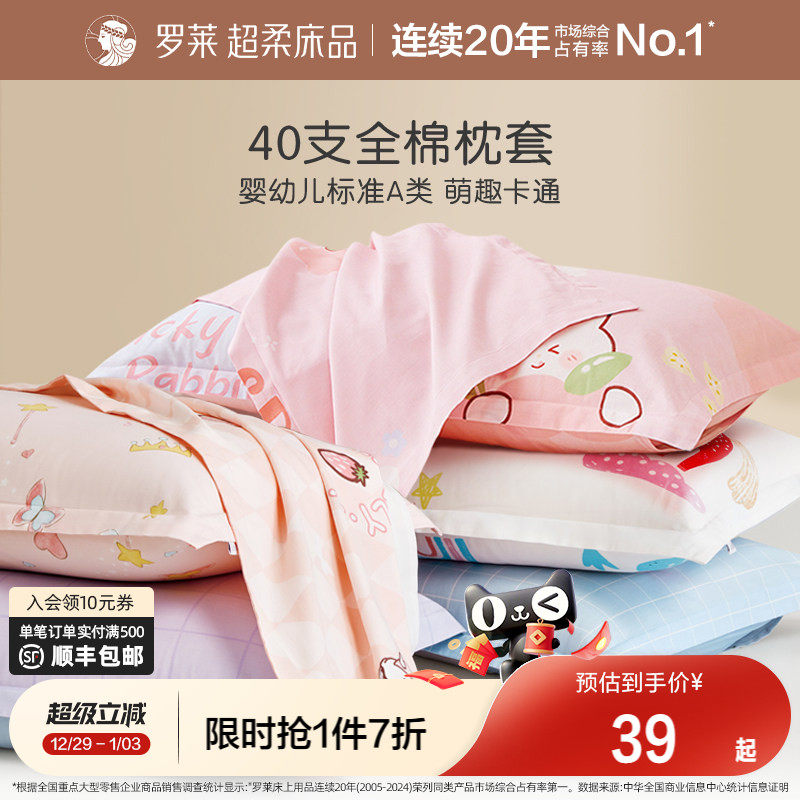 罗莱家纺儿童全面纯棉枕套女孩男生学生宿舍床品单卖婴幼儿可用