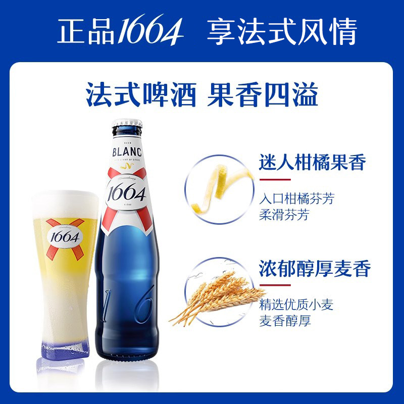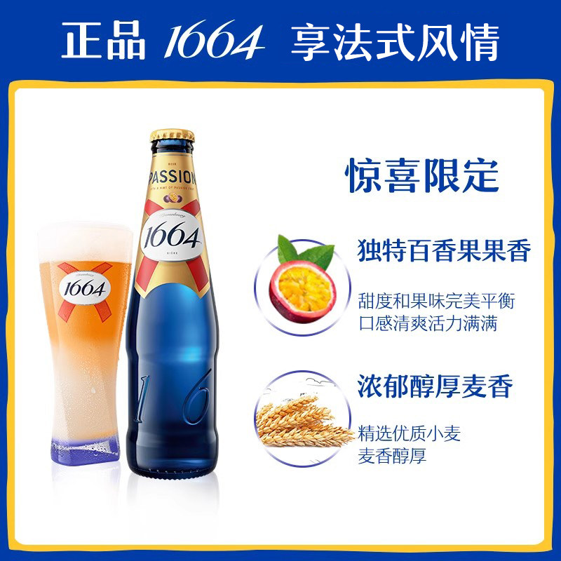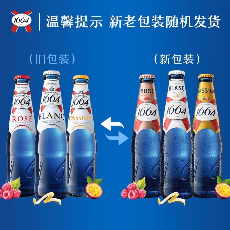 法式1664混合口味(白啤+桃红+百香果)330ml*9瓶装啤酒非原箱