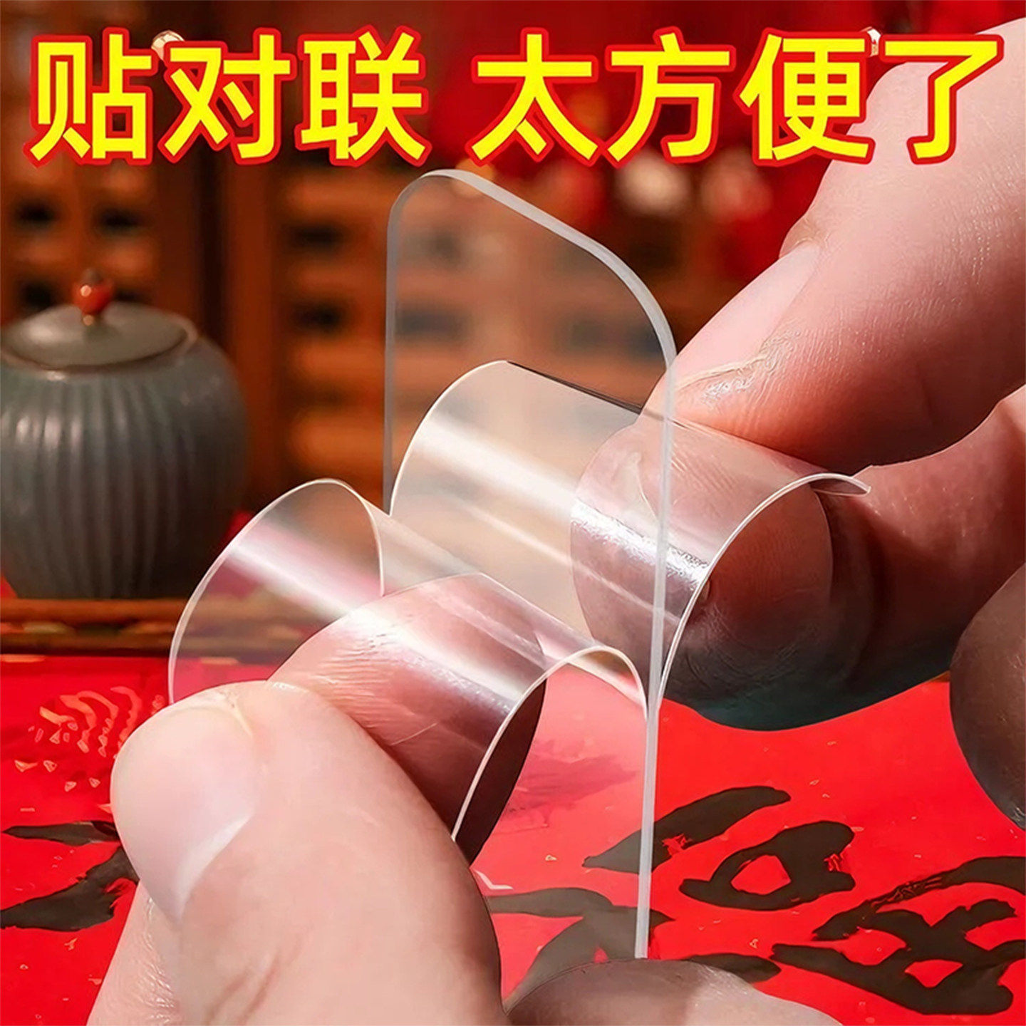 春联无痕双面胶墙面对联专用透明胶贴婚车婚房万能强力纳米胶贴片