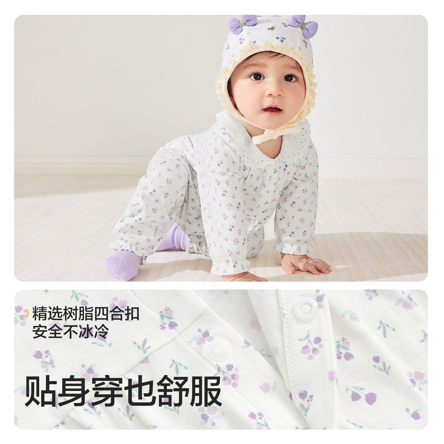 英氏婴儿衣服宝宝春季连体衣新生婴幼儿哈衣春秋初生纯棉和尚爬服